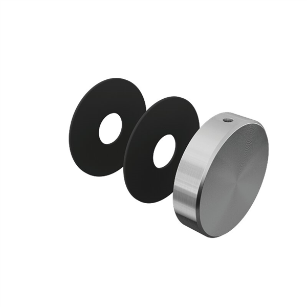 ICON Glass Adapter Kit - SS316 SATIN Includes 1 x 50mm diameter end cap, 1 x M12x55mm threaded rod, 2 x plastic washers and 1 x plastic bush