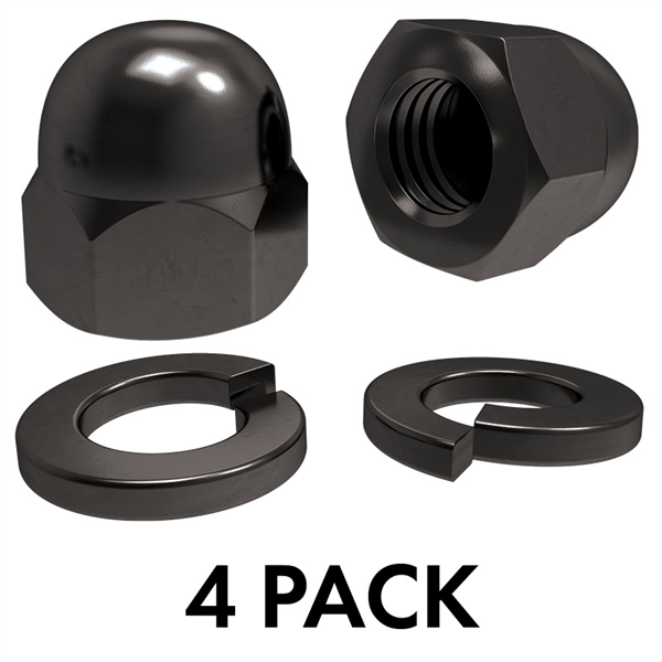 M12 DOME NUT w/ WASHER - BLACK - 4pk